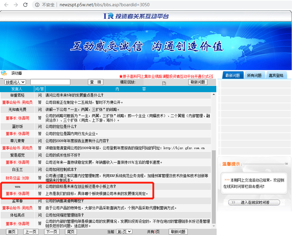 2009年9月,张昌明接任原子高科董事长。在全景网IR投资者关系互动平台上,明确向投资者表示,上市是原子高科进一步发展的重要目标,至于究竟是选择创业板还是中小板,还要根据公司未来的发展情况而定。