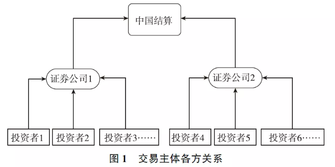 三是经纪业务交易过程中,投资者、证券公司与中国结算之间形成行纪法律关系。首先,根据投资者与证券公司的开户协议,完成开户后,证券公司接受投资者发出的指令买卖证券,在此过程中,证券公司对投资者的证券及资金账户记加或记减,理论上投资者之间成立买卖合同法律关系。其次,在中国结算承担中央对手方的多边净额结算方式下,证券交易必须通过证券公司进行,因此在该阶段投资者之间的买卖合同被概括承受,证券公司作为行纪人直接与中国结算发生法律关系,并对中国结算直接享有权利、承担义务,投资者并不直接与中国结算发生法律关系。最后,在证券交收过程中,证券公司担保投资者对中国结算的证券和资金交收,中国结算担保对证券公司的交收(见图1)。
