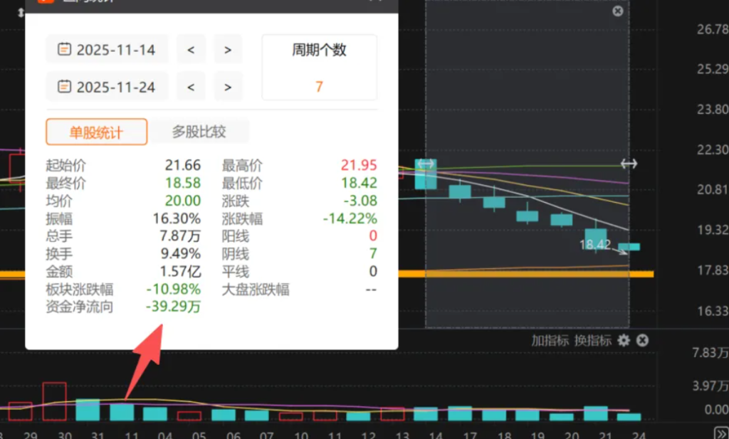 但是如果是用控盘的方式迫使股价持续下跌,这种情形就涉嫌操纵股价,但如果不是,如何解释7连跌的情况下,资金净流出仅39.29万元?