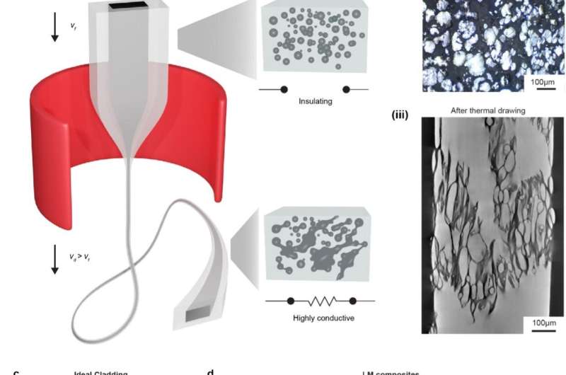不幸的是,正如 FIMAP 负责人 Fabien Sorin 所解释的,液态金属极难加工,尤其难以制造兼具高导电性和稳定性与拉伸性的电子纤维。现在,实验室通过一种称为热拉图的技术克服了这一挑战,这种技术传统上用于光纤工程设计。