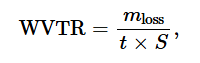 称重 15 克去离子水,装在开口直径 12 毫米的玻璃瓶中。不同盖层的玻璃瓶被放置在 25°C、湿度 30%的恒温室中。每瓶的重量下降在 24 小时后进行测量。WVTR 可通过以下方程 48 得到: